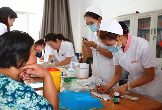 施天使之(zhi)愛,佑百(bai)姓健康。義診活動(dòng)當天,共有(yǒu)心髒病醫(yī)院、胸科(ke)醫(yī)院、消化病醫(yī)院、婦科(ke)腫瘤醫(yī)院、腫瘤醫(yī)院、內(nei)分(fēn)泌科(ke)、檢(jian)驗(yàn)中(zhong)心、超聲診療中(zhong)心的(de)33位醫(yī)護人(ren)員(yuan)髮(fa)揮各自的(de)專(zhuan)業特長(zhang),爲(wei)當地的(de)百(bai)餘名(míng)群衆提供免費血液生(sheng)化檢(jian)查、心電(dian)圖檢(jian)查、B超檢(jian)查,送上義診咨詢、健康指導(dao)、保健宣教等(deng)“健康大(da)禮包”。